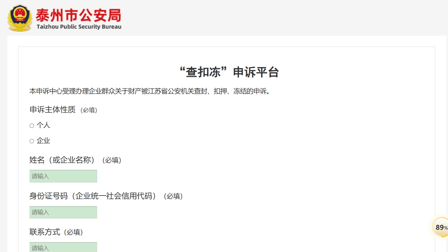 为进一步畅通诉求反映渠道,及时受理办理企业群众关于财产被泰州公安机关查封、扣押、冻结的申诉,11月13日,泰州市公安局正式上线运行“查扣冻”申诉平台,用于处置企业群众相关申诉事项。