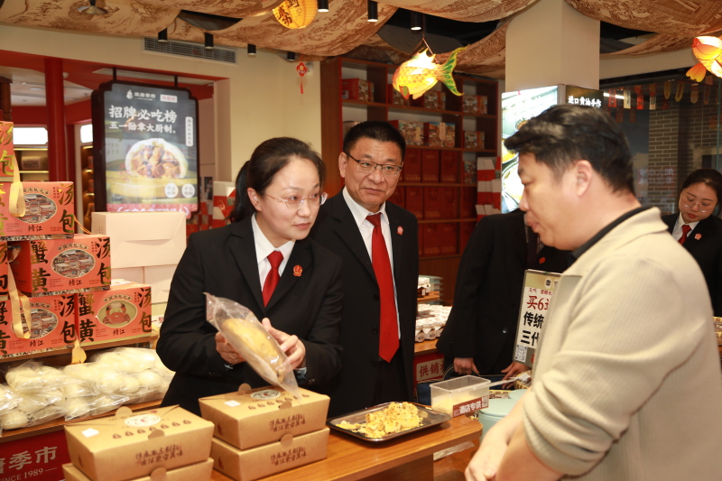 座谈交流:共话IP保护,助力行业发展 实地走访结束后,各方举行了专题座谈交流。靖江法院黄颖宏专委结合近年来审理的涉食品知识产权典型案例,深入剖析了仿冒商标、字号、包装装潢等常见侵权类型,呼吁餐饮协会及广大商户提高知识产权自我保护意识,共同守护品牌权益。 季市镇领导详细介绍了美食街区打造的“季小糕”“季小包”“季小饼”IP形象以及“季家市”logo。靖江市知识产权局、版权局代表分别就商标品牌建设、地理标志保护及版权登记流程进行了政策宣讲;靖江市妇联代表表示将发挥“联”的优势,助力女性创业者提升知识产权保护意识。季市镇餐饮协会及商家代表结合自身经营实际,围绕品牌建设等问题作了交流发言。代表委员对法院主动延伸司法职能、服务地方特色产业的做法给予了高度评价。 泰州中院民三庭庭长徐佼表示,“老字号”“土特产”背后承载的不仅仅是商业价值,更是几代人的匠心坚守、一方水土的文化记忆,以及无数创业者勤劳智慧的结晶。法院将持续当好坚强后盾,一方面常态化开展法治宣传,不断提升商户守法经营、依法护权的意识;另一方面严厉打击各类侵权行为,切实维护市场主体合法权益,为老字号传承发展和美食街特色品牌建设提供坚实司法保障,让广大商户在传承非遗技艺、坚守匠心品质的同时,更有底气、更有方向地开展创新创造。