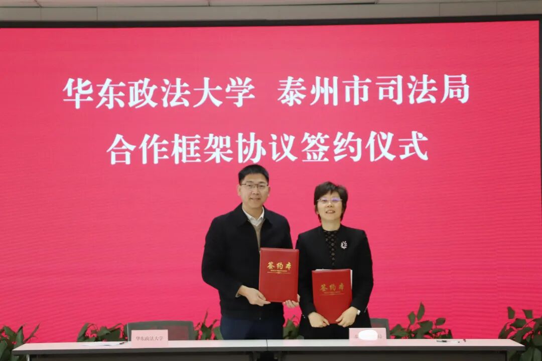 座谈会上,双方围绕优势互补、资源共享、共同提高的合作核心,就法治人才培养、理论实务研究、专家智库建设、党建交流共建等重点领域达成广泛共识,现场签署《华东政法大学与泰州市司法局合作框架协议》。